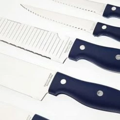 Null Michelino 6-teiliges Edelstahl Messer-Set Mit Messerblock Aus Holz Kochmesser Blau