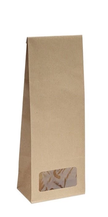 Material: 70g Kraftpapier braun enggerippt (Außenlage) / 25 my OPP Schutzfolie (Innenlage)
