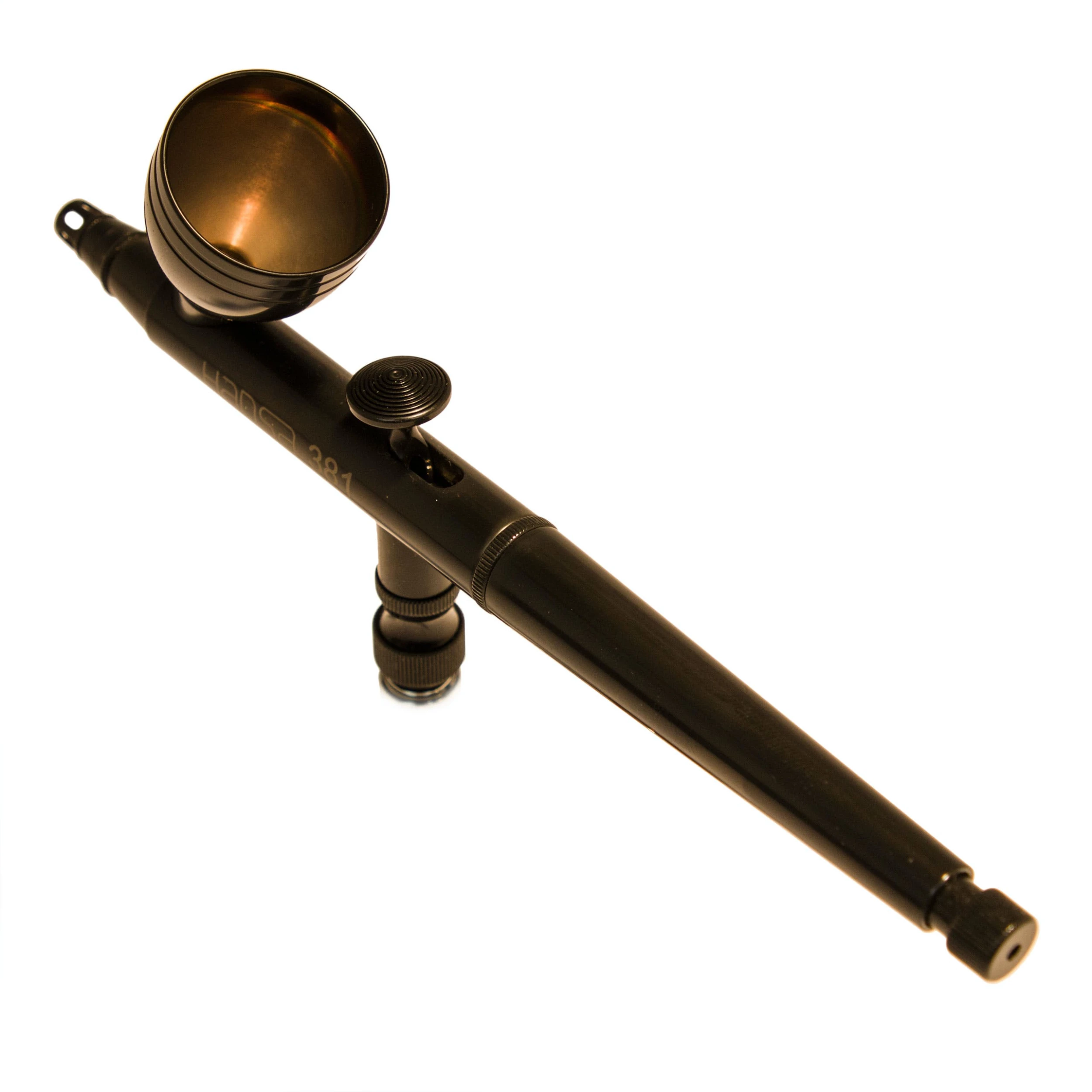 Alle Airbrushes der Serie Hansa Topline verfügen über eine kontrollierte Doppelfunktion, das heißt der Bedienungshebel wird nur in eine Richtung nach hinten gezogen, das Mischen von Luft und Farbe geschieht automatisch. Selbstverständlich verfügen alle Topline über ein selbstzentrierendes / selbstdichtendes Steckdüsensystem, Hebel mit progressiver übersetzung sowie ein Endstück mit einstellbarer Farbregulierung. Ein Umrüsten auf andere Düsengrößen (0,2 / 0,3 / 0,4) ist einfach und schnell ohne Werkzeug möglich. `Der Apparat für den Hobby- und Profi-Airbrusher`. Optimierter Farbbehälter garantiert das Nachlaufen von Farbe bei senkrechten Arbeiten.