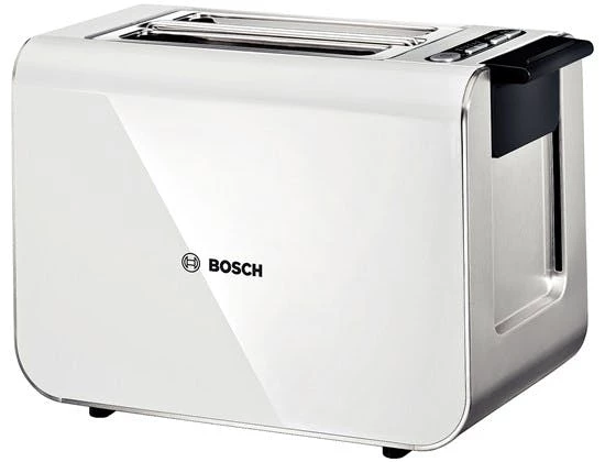 Bosch | Toaster Styline Kompakt, Weiss grauDer Toaster, der aus jedem Tag einen Sonntag macht. Gleichmäßig geröstete Toasts.Oder Brötchen, dank versenkbarem Aufsatz. Oder schnell mit dem Toaster aufgetaut.Das Besondere ist die Glasquarz Heizung, keine glühenden oder rostenden Drähte.Leistung: 860 WattFarbe: weiss grau