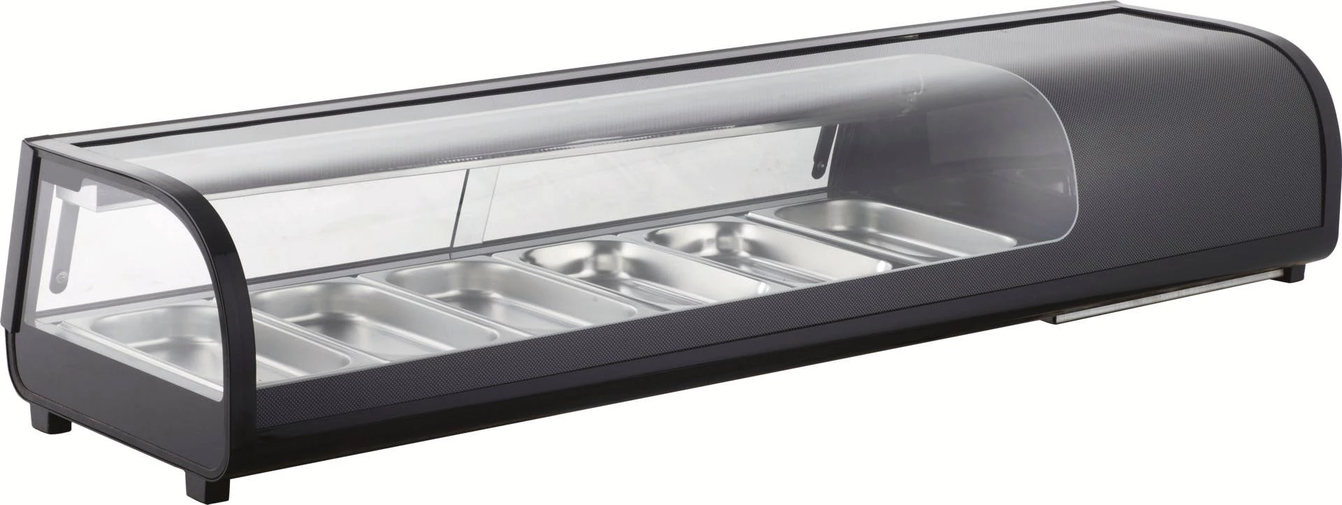 > Temperaturbereich: 0°C bis +12°C > statische Kühlung > elektronische Steuerung mit Digitaldisplay > schwarz > außen ABS und Glas > gebogenes Frontglas > LED-Innenbeleuchtung > max. Außentemperatur: +33°C > automatische Tauwasserverdunstung > Kühlmittel: R600a