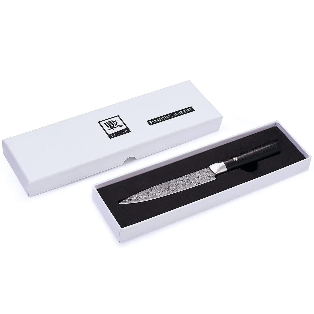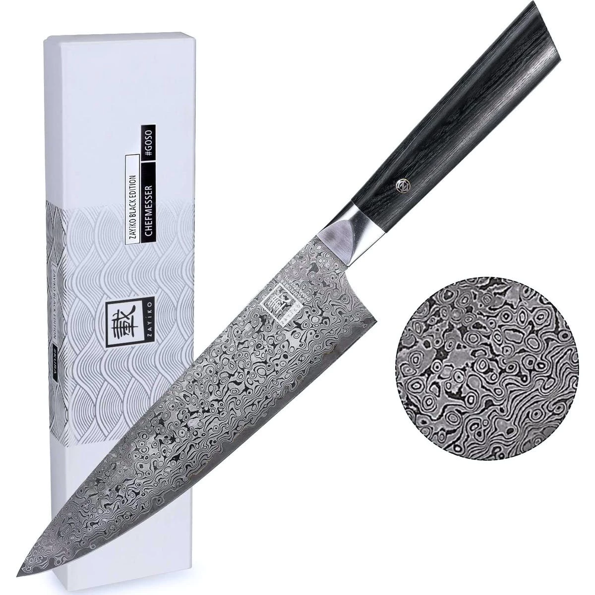 Der Kern der ZAYIKO Messer aus Damastenerstahl ist aus VG-10 Stahl mit einem Härtegrad von 60 (+/-2 HRC).