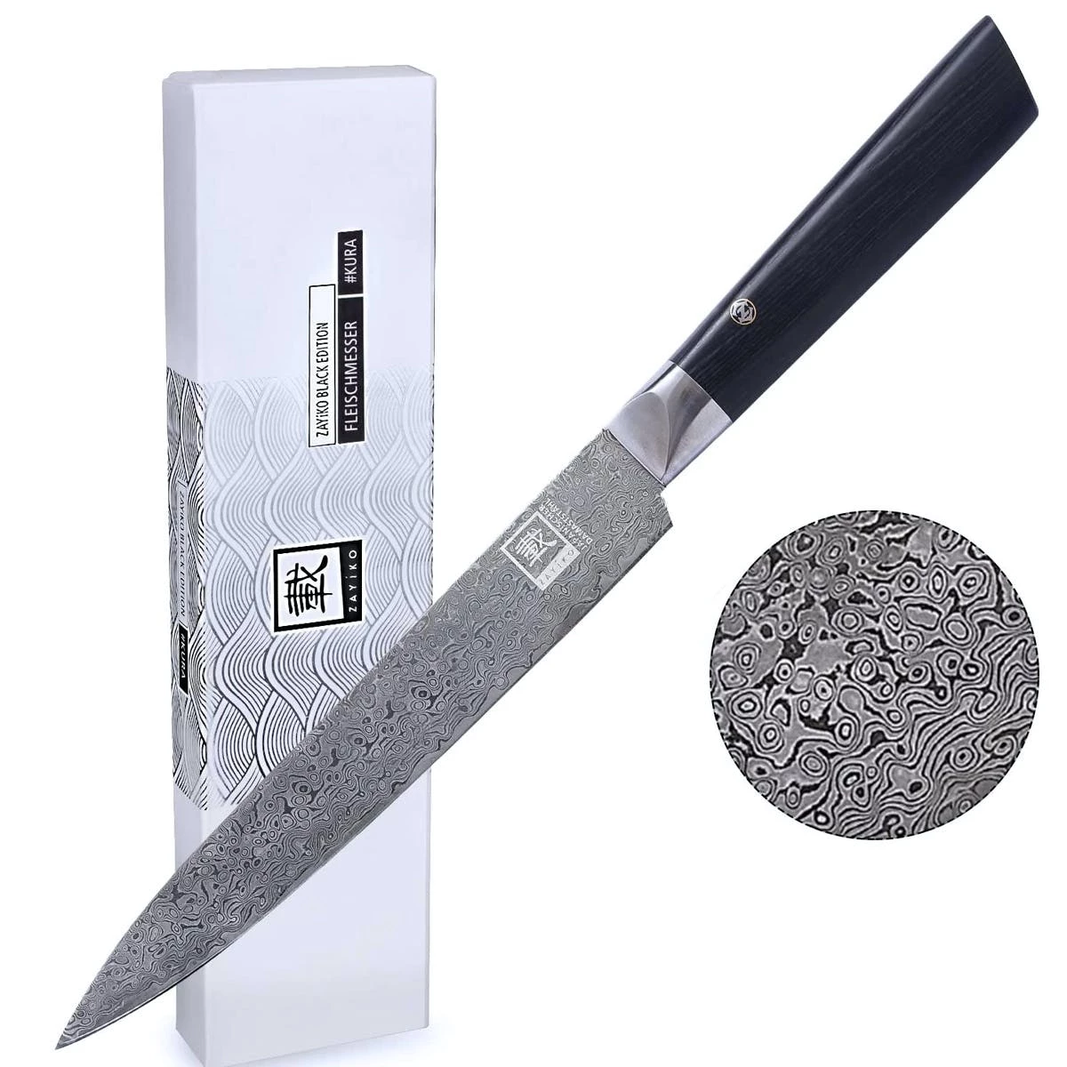 ZAYIKO Damastmesser BLACK EDITION `Allzweckmesser` – Pakkaholz – VG-10 Stahlkern
