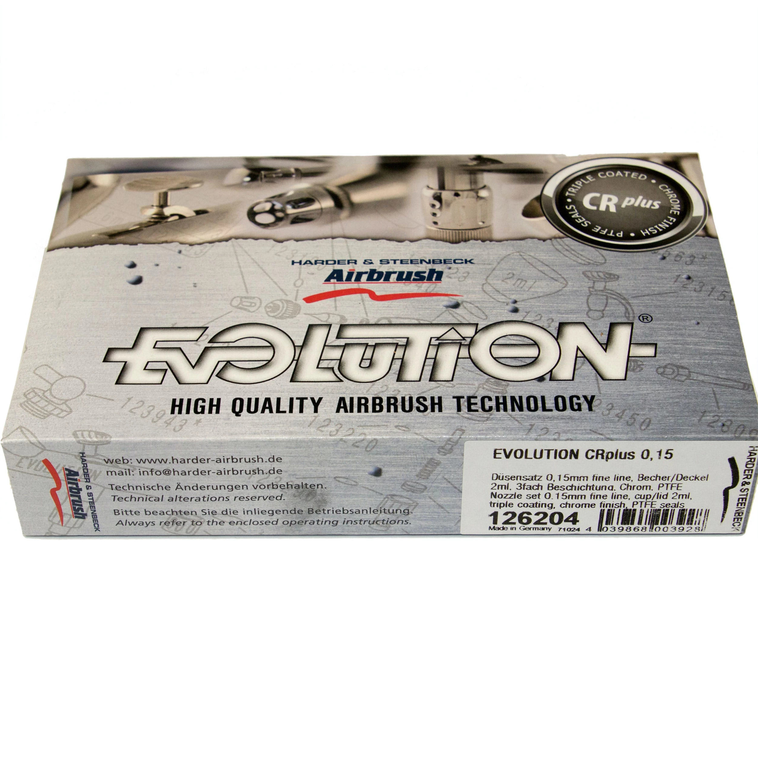 Die Verchromung der Geräte ist erheblich aufwändiger, daher bietet Harder & Steenbeck jeweils drei, etwas teurere Chrom-Modelle der Infinity und Evolution-Serie alternativ zu den bestehenden Nickel-Geräten an. Die CRplus-Modelle sind jeweils als Solo-Geräte mit 0,15, 0,2 oder 0,4 mm Düsensatz erhältlich. Ein weiteres Plus der neuen CRplus-Linie ist eine innovative Longlife-Nadeldichtung, die aus drei lösungsmittelresistenten PTFE-Dichtungen besteht und mit einer neuartigen Verschraubungstechnik gehalten wird. Auch an der Becherverschraubung, an der Düse und am Ventil sorgen die langlebigen PTFE-Dichtungen für sicheren Schutz vor unerwünschtem Luft- und Farbaustritt.
