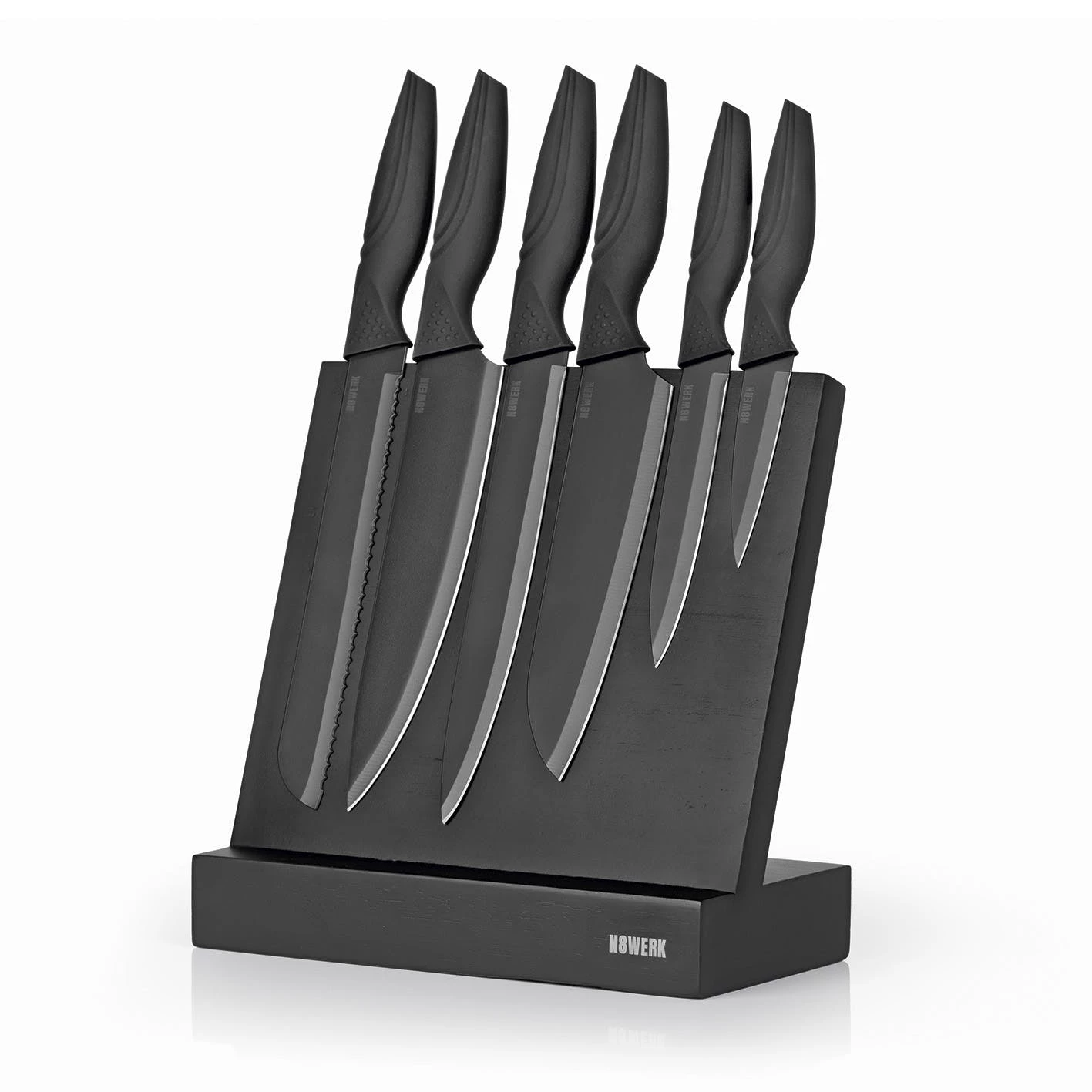 Art von Messern: Gemüsemesser 9cm, Universalmesser 13cm, Tranchiermesser 20cm, Kochmesser 20cm, Brotmesser 20cm,