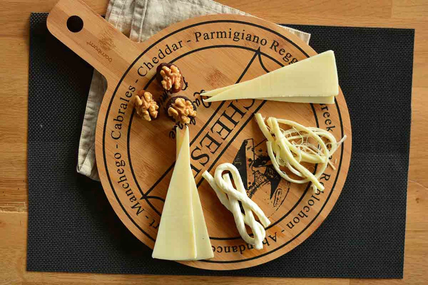 Dieses Käsebrett ist aus 100% Bambus hergestellt. Das Schneidebrett ist wasserabweisend und antibakteriell. Das Material vom Scheidebrett besteht aus 100 % Bambus. Die Produkte sind von der Marke R&M Style, Eine Marke der Firma Preiswert & Gut. Asiago mit Prägung Größe 40 x 30 x 1 cm