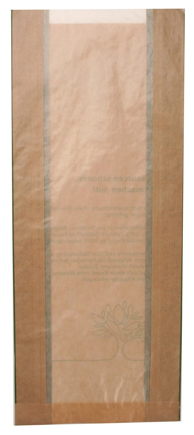 Null 1000x Blockbodenbeutel Kraftpapier Braun Mit Sichtfenster 55 + 30 X 175mm