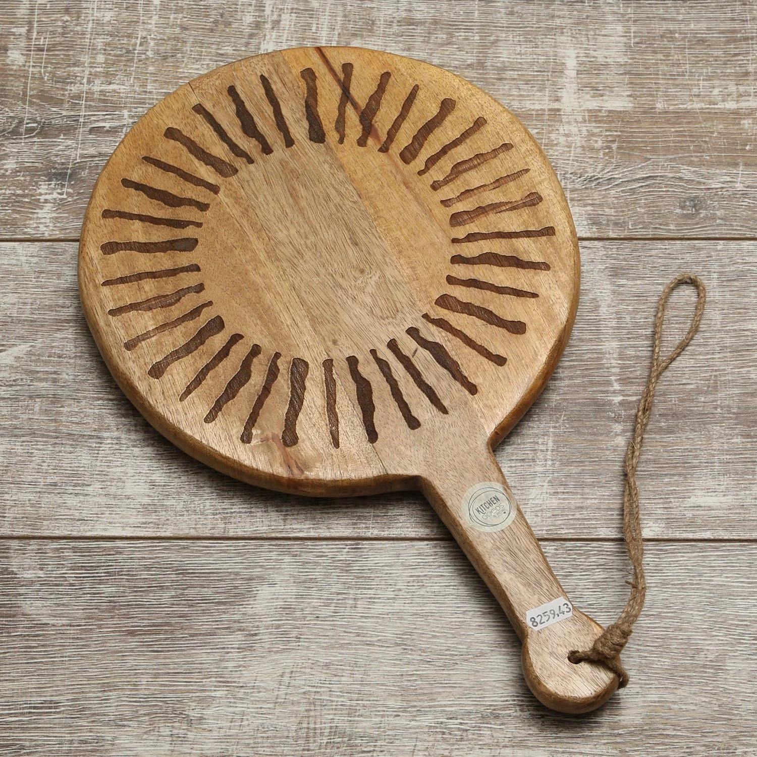 Schneidebrett SONNE – Servierbrett – rund – Mangoholz – mit Griff – L: 46cm – natur