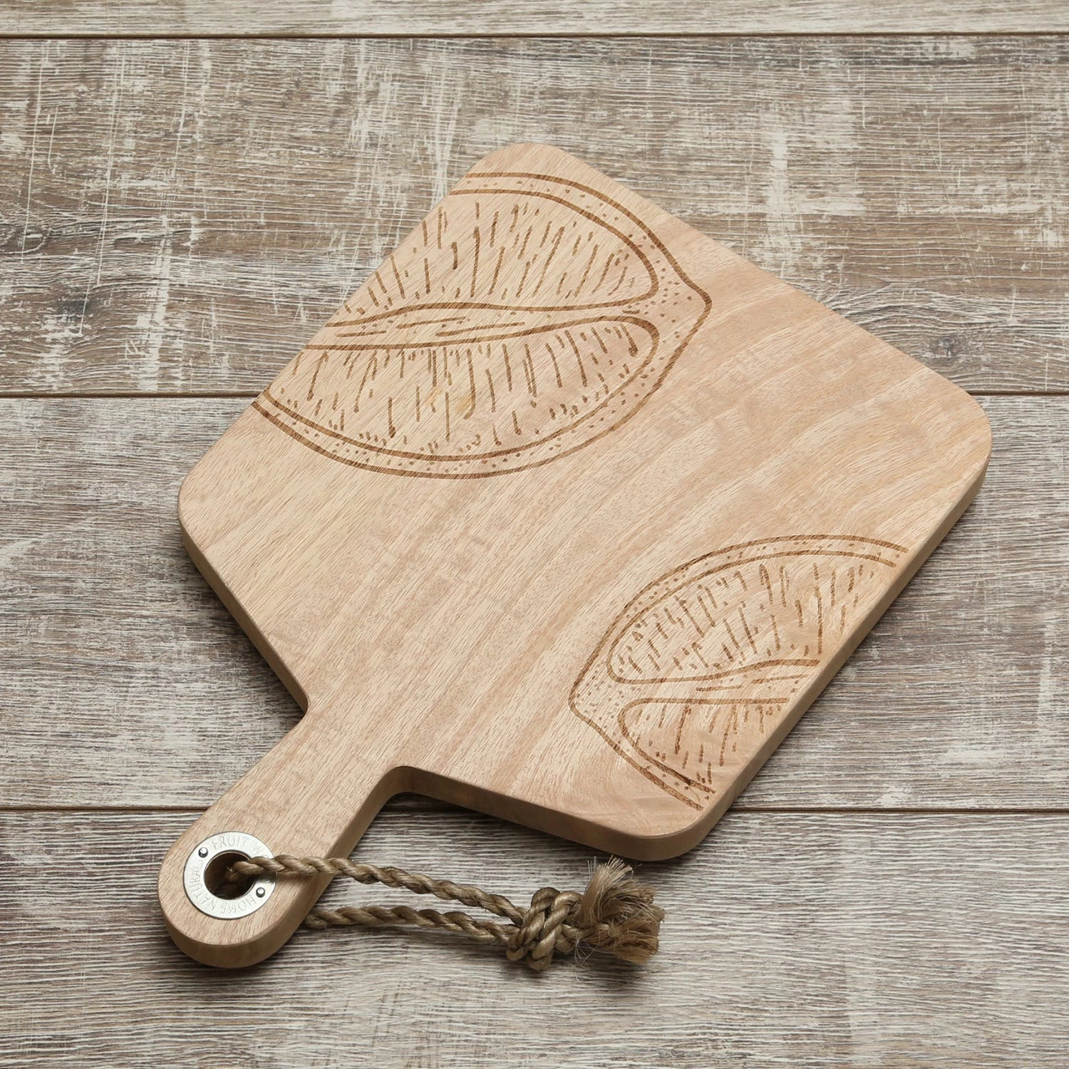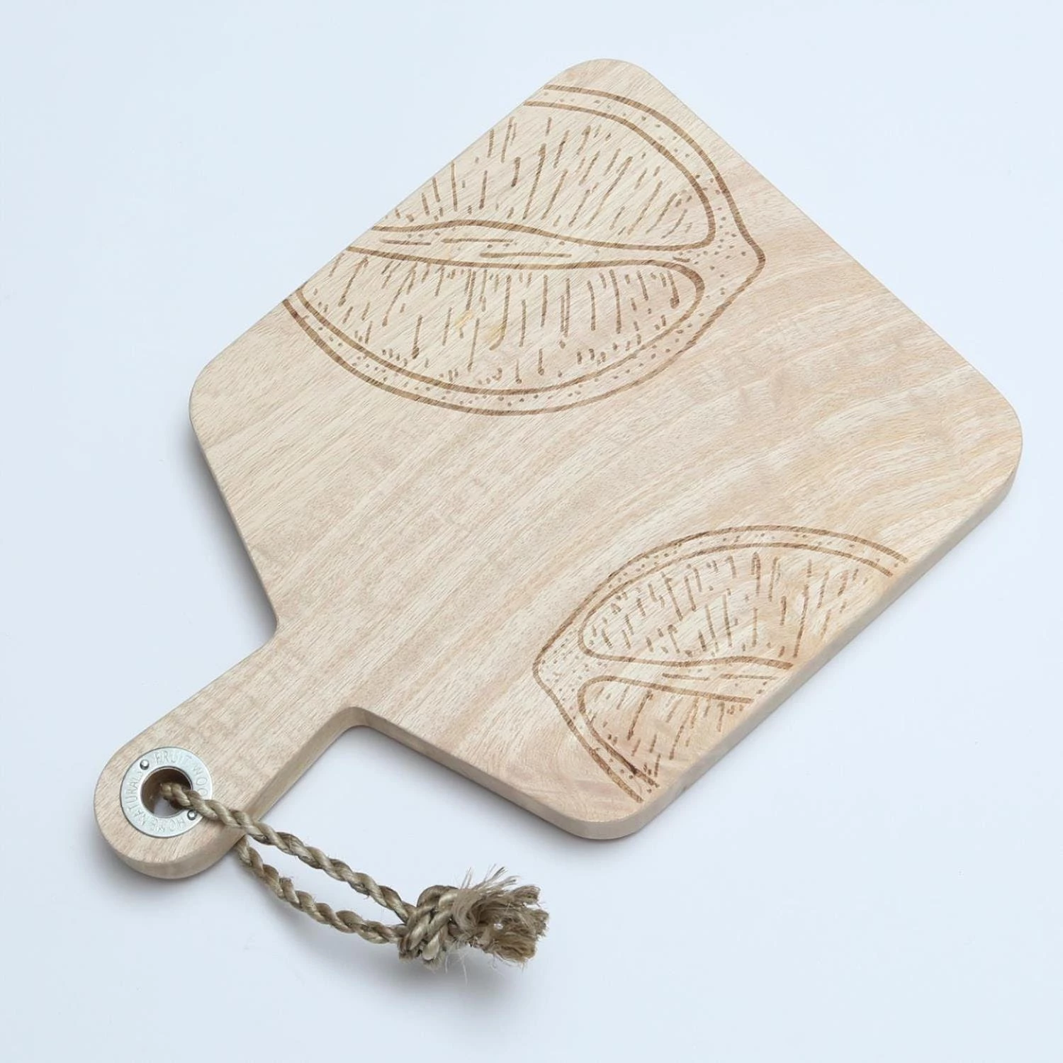 Schneidebrett – Vesperbrett – Mangoholz – Kordel – L: 38cm – Zitronenmotiv längs geschnitten – natur