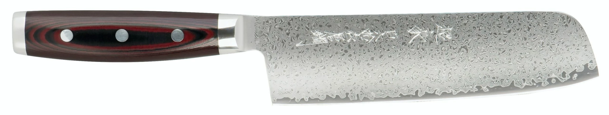 Das Nakiri Messer ist das traditionelle Gemüsemesser in der Japanischen Küche. Der Kullenschliff verhindert zum Teil das ankleben von Ihrem Schnittgut an Ihrer Klinge. Nakiri-Messer mit Kullenschliff: Klingenlänge: 18 cm, Schneidlage: VG 10 Stahl, 69 Lagen Damaszener Stahl, Klingenhärte: 61 HRC, Schliff: beidseitig, Ergonomisch geformter Handgriff aus Leinen Micarta